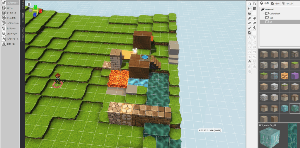 2025-10-12 RPG Developer Bakin 体験版 日記 2025.10.12 RPG Developer Bakinの体験版を触ってみた。ツクール系はまともに触ったことはないが、本作は直感的にステージを作れるのが面白いと感じた。体験版だと使用できる素材も限られているが、水の質感とかはいい感じだと思う。しいて言えば製品版は1万円することが気になる。デジタルプラットフォームのみで売られているので飽きた場合でも売れないのが難点。ステージ作成はよさげだが購入は至らないか。