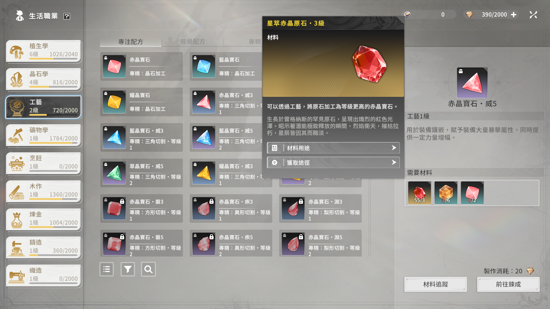 ・赤晶原石・3級(上級):スタミナ20消費で5~6個獲得