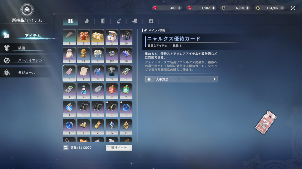 無料のガチャアイテムでガチャを回したところ、ニャルクス優待カード×5が出たのは幸先がいい。