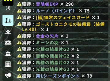 2025-12-19 カニクモ スターレゾナンス 2025.12.19 カニクモで遊んでいたら一気に2つドロップした。昨日よりはステータスも上がっているので(気のせいかもしれないが)今日は倒しやすいように感じた。ムークボスに行けるようになるのはまだ先っぽいので鍵も温存せずガンガン使っている。
