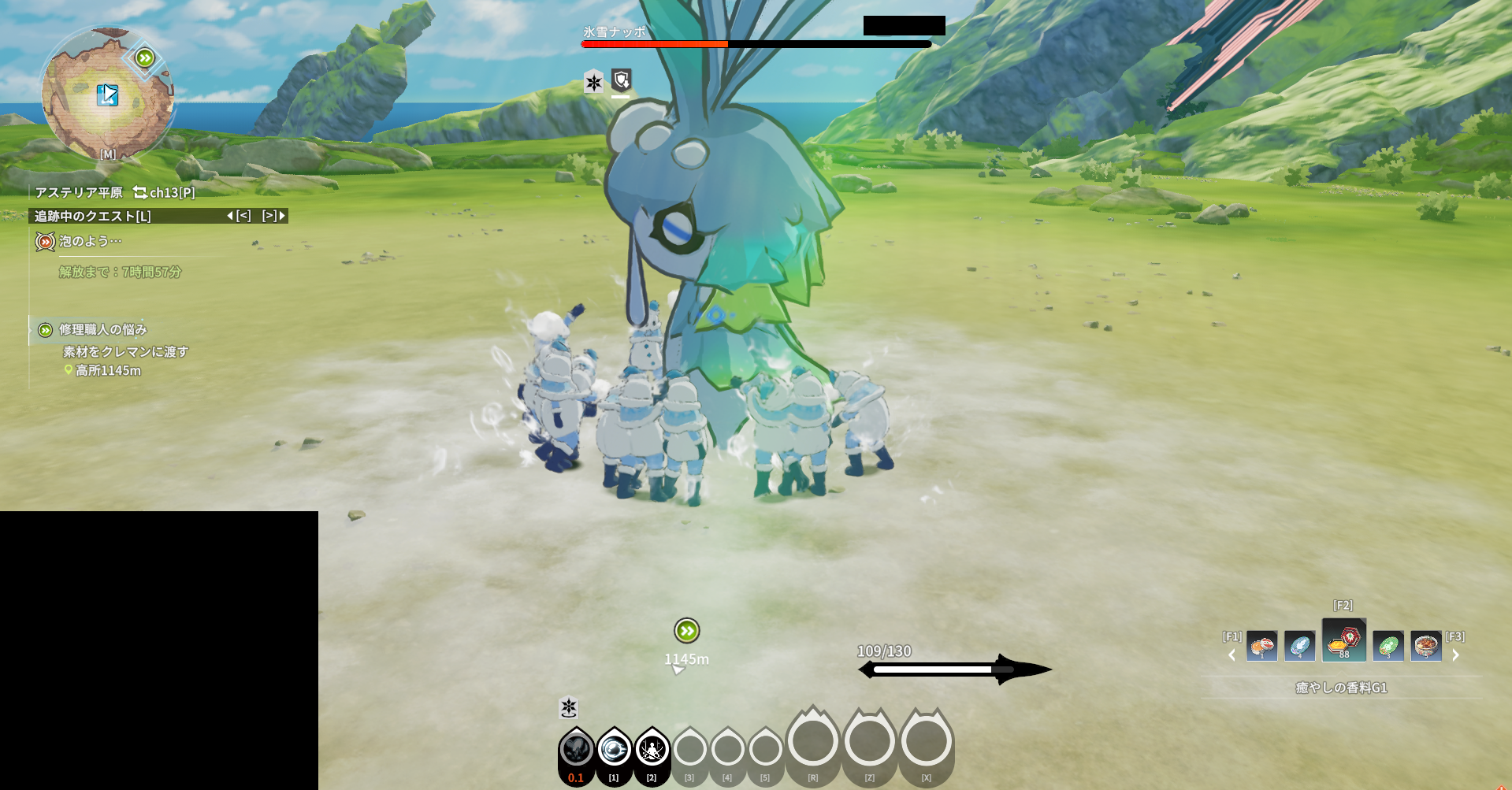 今日はクリスマスということで「雪だるまの奇跡!ナッポ討伐戦」に参加してみた。雪だるまに変身してフィールドボスのナッポを倒すという内容。特に目新しさはなかった。それと自動戦闘にしていると専用技が発動できないように感じたが気のせいだろうか。