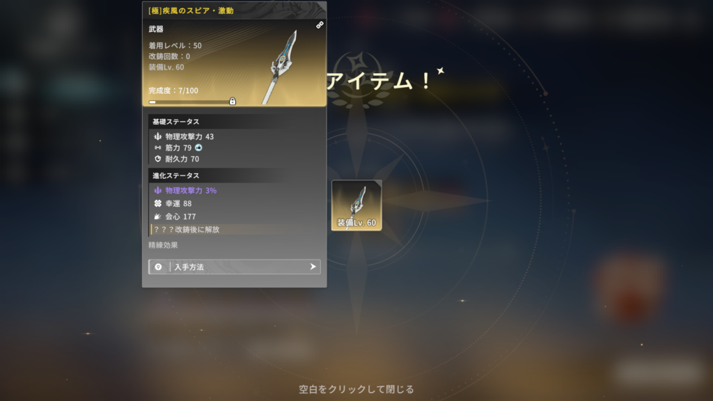 2026-01-08 金武器ドロップ スターレゾナンス 2026.01.08 早朝キングムークを周回していたら確定箱をドロップ。無事に金武器を入手できたがサブステが微妙のため未装備。これは赤武器の素材にしてしまうのがよさそう。